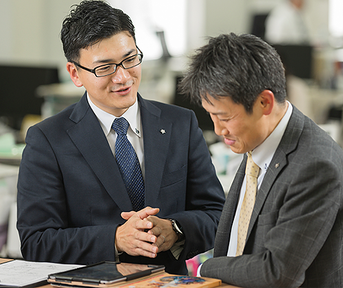 かなり明るくにぎやかな雰囲気です。現在、大阪支店自動車グループは30~40代の10名が活躍しており、年齢や入社年次に関係なく、活発な意見交換が行われています。オフィス内はパーテーションなどで仕切られていないため、文字通り風通しはビュービューですね。隣の広告事業部のメンバーとも気軽に会話したりランチに行ったりしています。ナレッジの共有や意見交換なども盛んに行っているので、仲間と一緒に成長していきたい方にとっては、とても最適な環境だと思いますよ。